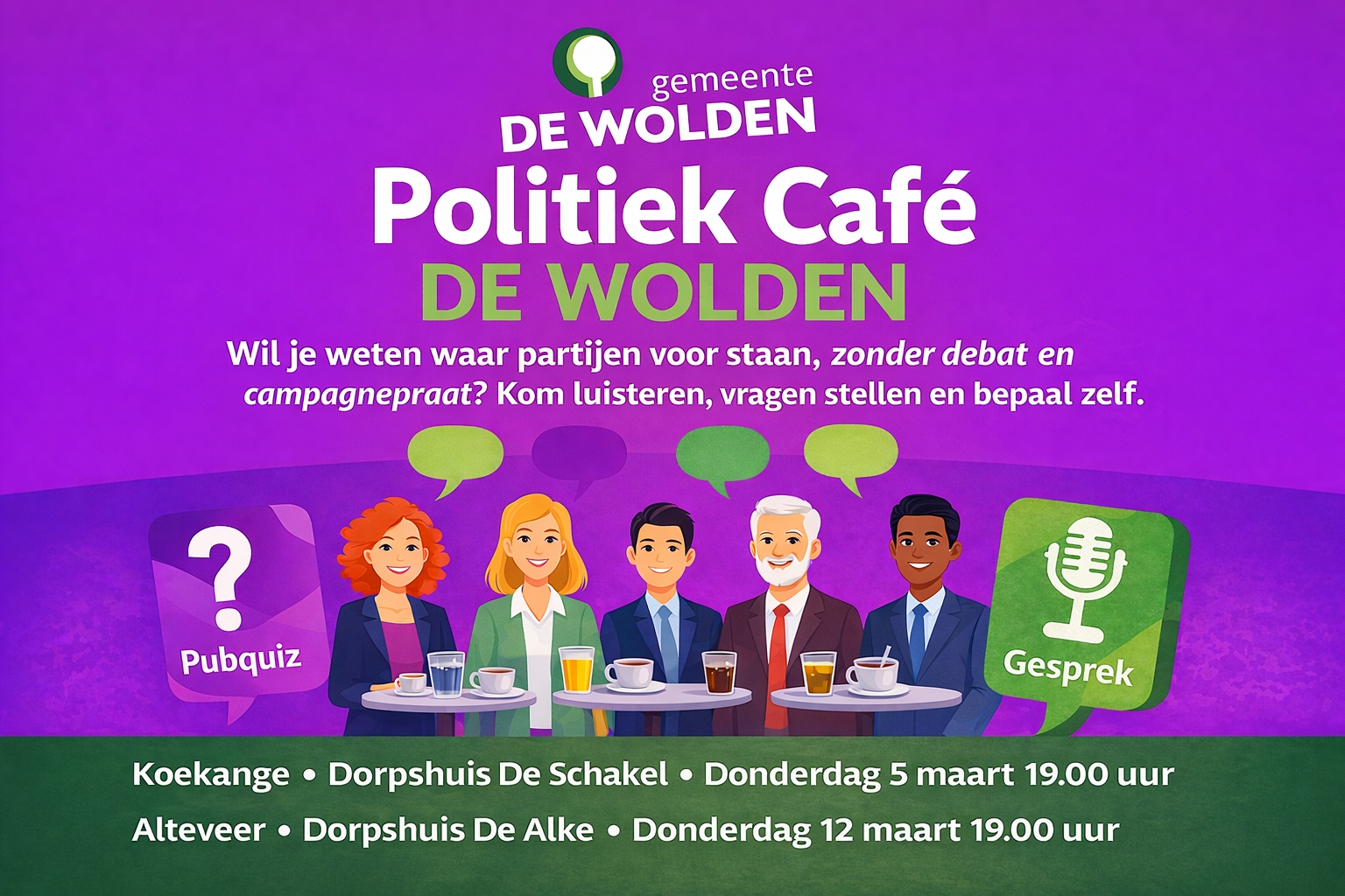 In aanloop naar de gemeenteraadsverkiezingen op 18 maart organiseert de gemeenteraad van De Wolden op donderdag 12 maart een Politiek Café in Dorpshuis de Alke.